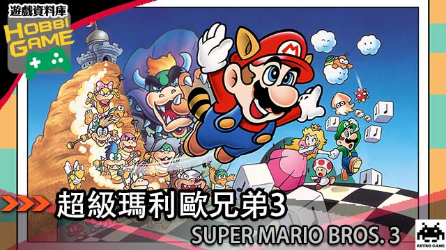 SUPER MARIO BROS. 3 是「超级马里欧兄弟」系列的第三部作品,是一款2D横向卷轴的平台游戏。 故事背景为库巴不仅卷土重来,还带着库巴7人众分别夺取7个蘑菇世界的魔杖,并利用魔杖将国王变成动物。 玛利欧与路易吉必须将魔杖夺回并打败库巴,才能使世界恢复和平并救出碧姬公主。