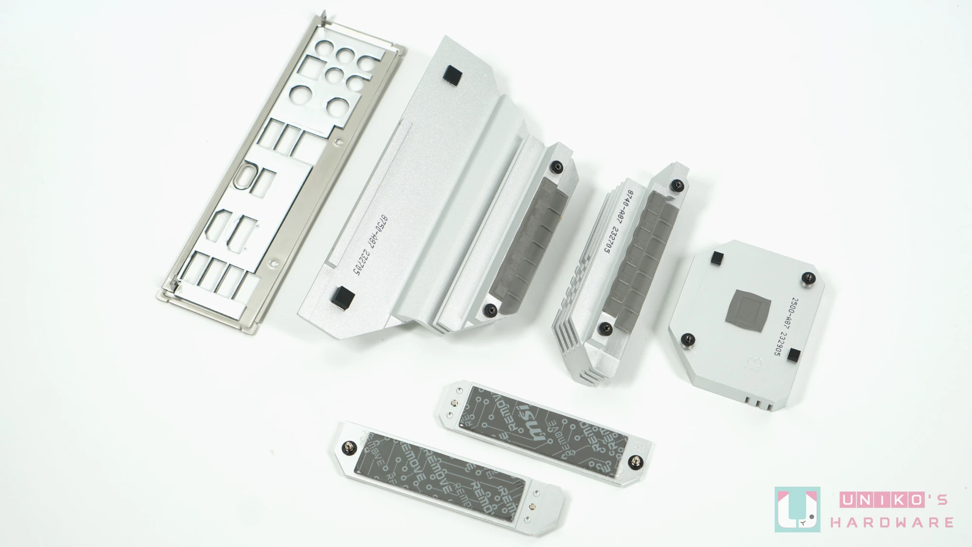 配件包括:1份欧盟文件、1 张MSSI SHOUT OUT 宣传卡、1 份快速安装指南、1 根机壳排线集线、3 颗快拆式 EZ M.2 CLIP、1 根延长式天线、1 根 SATA 线。