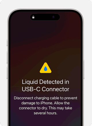 iPhone和iPad本身就有「USB-C 连接器侦测到进水」的功能, Lightning 或 USB-C 充电线或配件连接 iPhone,系统检测到液体时,便会显示消息,让我们立即拔下充电连接线。