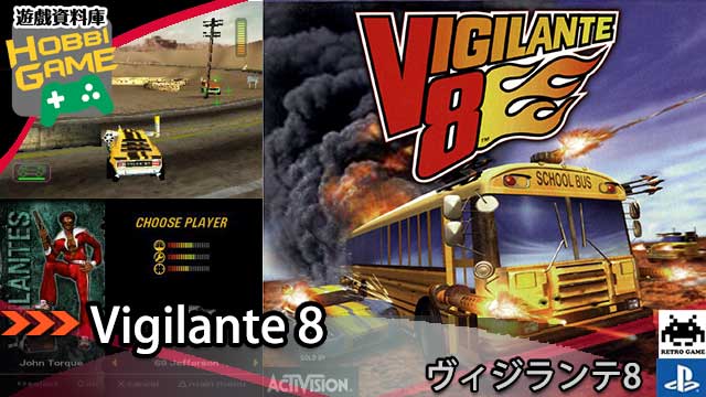 Vigilante 8 由 Luxoflux 开发; Activision发行的对战动作游戏,玩家在游戏中驾驶各种车辆,与其他车辆,于不同的赛道上,利用各种武器进行战斗对决。