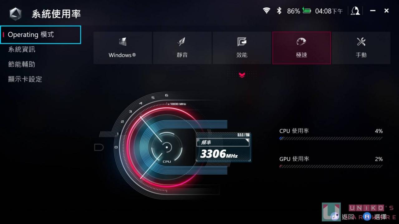 同样都可在 Windwos 内调整内显内存大小,监控方面却有重叠较多样化选择,方便进行游戏时,视被遮挡的影响度去选择,快速菜单还有一些较特别的设置,这些都是很方便的功能。