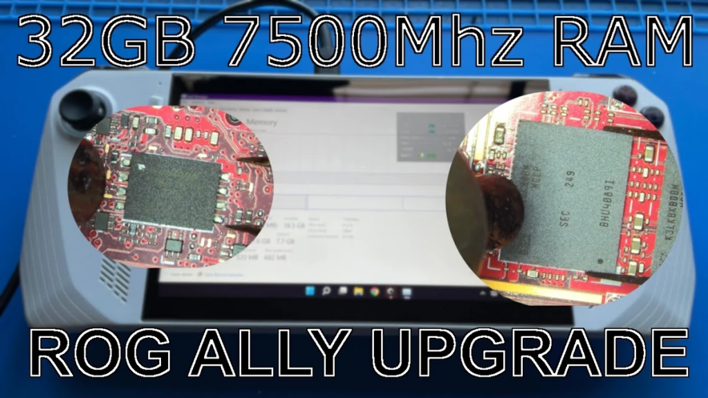 ROG Ally是一款相当热门的PC掌上型游戏机,配备AMD Ryzen Z1Extreme处理器与16GB LPDDR5-6400内存,不过16GB对部分玩家来说可能觉得不够用。 国外改装与维修频道 SlickBuys Mods and Repairs 找了一台 ROG Ally,将它内存升级成 32GB 容量,还是速度更快的 7500 MT/s 颗粒,预期将让机器的显示效能获得提升。