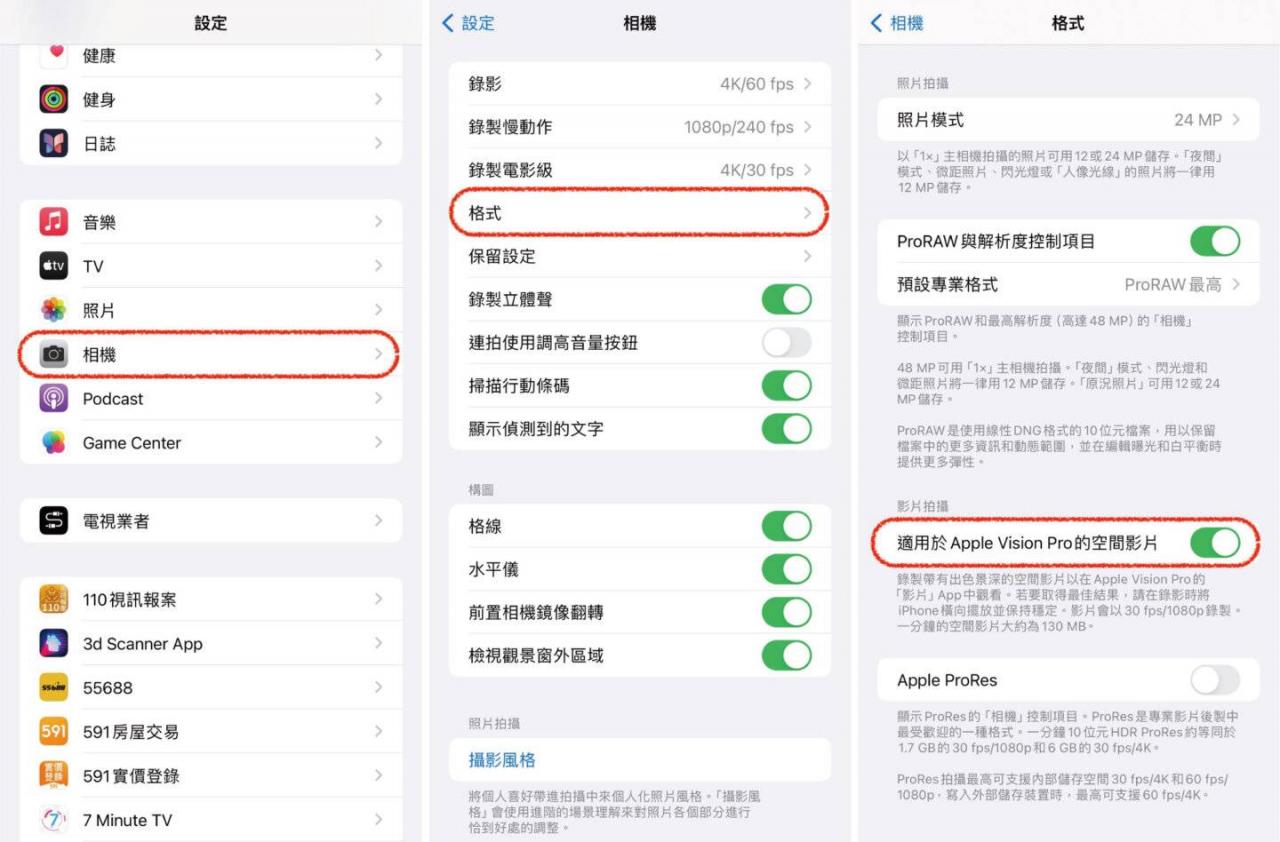 想要拍摄空间视频之前,需要先打开iPhone 15 Pro和iPhone 15 Pro Max的「设置」,启用空间视频拍摄功能后,才可以运用相机系统以 3D 方式捕捉视频。